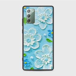 - Samsung Galaxy Note 20 Cover - Floral Series - Design 3 - Sky Blue - HQ Ultra Shine Premium Infinity Glass Soft Silicon Borders Case