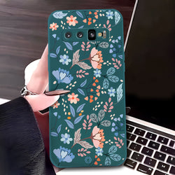 - Samsung Galaxy S10 Plus Cover - Dark Green - D4 - ONation Floral Series - HQ Liquid Silicone Soft Case