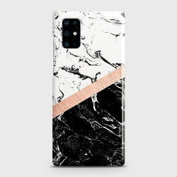 - Samsung Galaxy S20 Cover - Black & White Marble With Chic RoseGold Strip Case with Life Time Colors Guaranteeb58