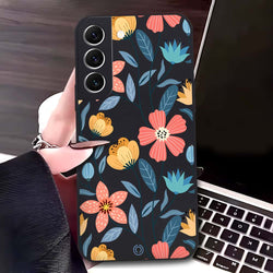 - Samsung Galaxy S22 5G Cover - Black - D1 - ONation Floral Series - HQ Liquid Silicone Soft Case