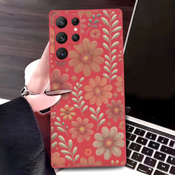 - Samsung Galaxy S22 Ultra 5G Cover - Red - D4 - ONation Floral Series - HQ Liquid Silicone Soft Case