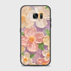 - Samsung Galaxy S7 Cover - Floral Series - Design 2 - Pink - HQ Ultra Shine Premium Infinity Glass Soft Silicon Borders Case