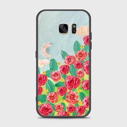 - Samsung Galaxy S7 Cover - Floral Series - Design 10 - Red & Green - HQ Ultra Shine Premium Infinity Glass Soft Silicon Borders Case