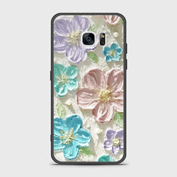 - Samsung Galaxy S7 Edge Cover - Floral Series - Design 3 - Sky Blue - HQ Ultra Shine Premium Infinity Glass Soft Silicon Borders Case