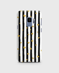 - Samsung Galaxy S9 - Trendy Black & White Lining With Golden Hearts Printed Hard Case With Life Time Colors Guarantee