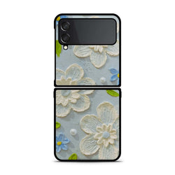 - Samsung Galaxy Z Flip 4 5G Cover - Floral Series - Design 3 - Sky Blue - HQ Premium Shine Durable Shatterproof Case