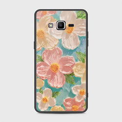 - Samsung Galaxy Grand Prime Cover - Floral Series - Design 13 - Offwhite & Green - HQ Ultra Shine Premium Infinity Glass Soft Silicon Borders Case