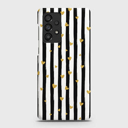 - Samsung Galaxy A33 5G Cover - Trendy Black & White Lining With Golden Hearts Printed Hard Case with Life Time Colors Guarantee (Fast Delivery)