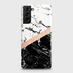 - Samsung Galaxy S21 5G Cover - Black & White Marble With Chic RoseGold Strip Case with Life Time Colors Guarantee ( Fast Delivery )