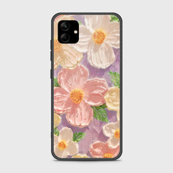 - Samsung Galaxy A12 Cover - Floral Series - Design 1 - Purple & Aqua - HQ Ultra Shine Premium Infinity Glass Soft Silicon Borders Case