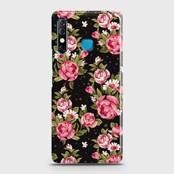 - Tecno Camon 12 Cover - Trendy Pink Rose Vintage Flowers Printed Hard Case with Life Time Colors Guarantee b55