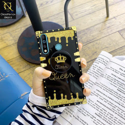 - Tecno Camon 12 Cover - Black - Golden Electroplated Luxury Square Soft TPU Protective Case with Holder(84)