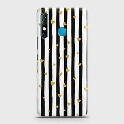 - Tecno Spark 4 Cover - Trendy Black & White Lining With Golden Hearts Printed Hard Case with Life Time Colors Guarantee