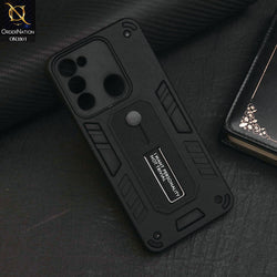 - Tecno Spark Go 2022 Cover - Black - Hybrid Stylish Slide Finger Grip With Metal Kickstand Soft Borders Case