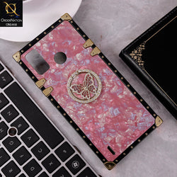 - Tecno Spark 6 Go Cover - Baby Pink - Trendy Stylish Soft Square Trunk Case with Ring Holder Butterfly Design