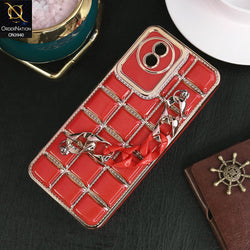 - Vivo Y02A Cover - Red - 3D Electroplating Square Grid Design Soft TPU Case With Chain Holder(3)
