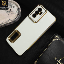 - Vivo V23e Cover - White - All New Electroplating Borders With Logo Hole Protective Soft Silicon Case