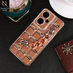 - Vivo Y27 Cover - Brown - 3D Electroplating Square Grid Design Soft TPU Case With Chain Holder(3)