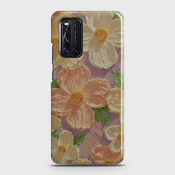 - Vivo V19 Cover - Floral Series - Design 1 - Purple & Aqua - Matte Finish - Snap On Hard Case with LifeTime Colors Guarantee