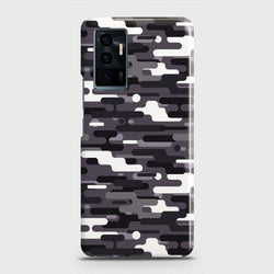 - Vivo V23e Cover - Camo Series - White & Grey Design - Matte Finish - Snap On Hard Case with LifeTime Colors Guarantee