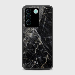 - Vivo V27e Cover- Black Marble Series - HQ Ultra Shine Premium Infinity Glass Soft Silicon Borders Case (Fast Delivery)