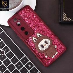 -  Vivo V40 Cover - Maroon - Cute 3D Cartoon Soft Glitter Case