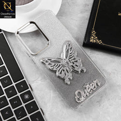 - Vivo Y03t Cover - Black -Trendy Queen Dual Tone Gradient Glitter Shiny Soft Case With Butterfly Kickstand Holder (Glitter Does Not Move)