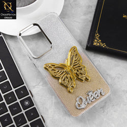 - Vivo Y03t Cover - Golden -Trendy Queen Dual Tone Gradient Glitter Shiny Soft Case With Butterfly Kickstand Holder (Glitter Does Not Move)