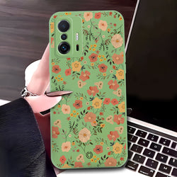 - Xiaomi 11T Pro Cover - Dark Green - D1 - ONation Floral Series - HQ Liquid Silicone Soft Case