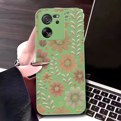 - Xiaomi 13T Pro Cover - Light Green - D3 - ONation Floral Series - HQ Liquid Silicone Soft Case