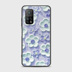 - Xiaomi Mi 10T Pro Cover - Floral Series - Design 3 - Sky Blue - HQ Ultra Shine Premium Infinity Glass Soft Silicon Borders Case
