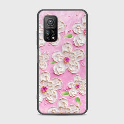 - Xiaomi Mi 10T Pro Cover - Floral Series - Design 5 - Pink & White - HQ Ultra Shine Premium Infinity Glass Soft Silicon Borders Case
