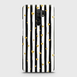 - Xiaomi Redmi 9 Cover - Trendy Black & White Lining With Golden Hearts Printed Hard Case with Life Time Colors Guarantee