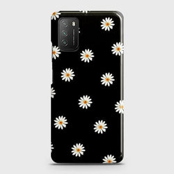 - Xiaomi Redmi 9T Cover - White Bloom Flowers with Black Background Printed Hard Case with Life Time Colors Guarantee g37 ( Fast Delivery )