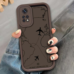 - Xiaomi Redmi Note 11E Pro - Brown - Airplane Route Design - ONation Step Up Series - HQ Liquid Silicone Soft Case