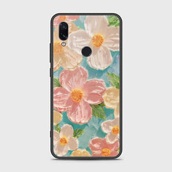 - Xiaomi Redmi Note 7 Cover - Floral Series - Design 5 - Pink & White - HQ Ultra Shine Premium Infinity Glass Soft Silicon Borders Case