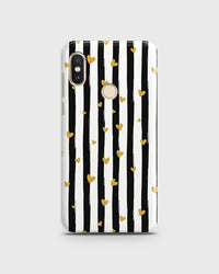 - Xiaomi Redmi Y2 - Trendy Black & White Lining With Golden Hearts Printed Hard Case With Life Time Colors Guarantee