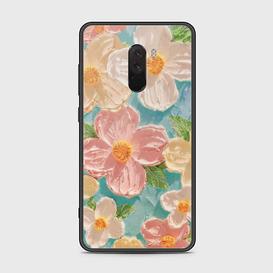 Xiaomi Pocophone F1 Cover - Floral Series - Design 15 - Blue & Green - HQ Ultra Shine Premium Infinity Glass Soft Silicon Borders Case