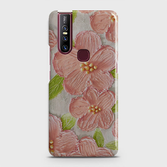 Vivo V15 Cover - Floral Series - Design 5 - Pink & White - HQ Ultra Shine Premium Infinity Glass Soft Silicon Borders Case