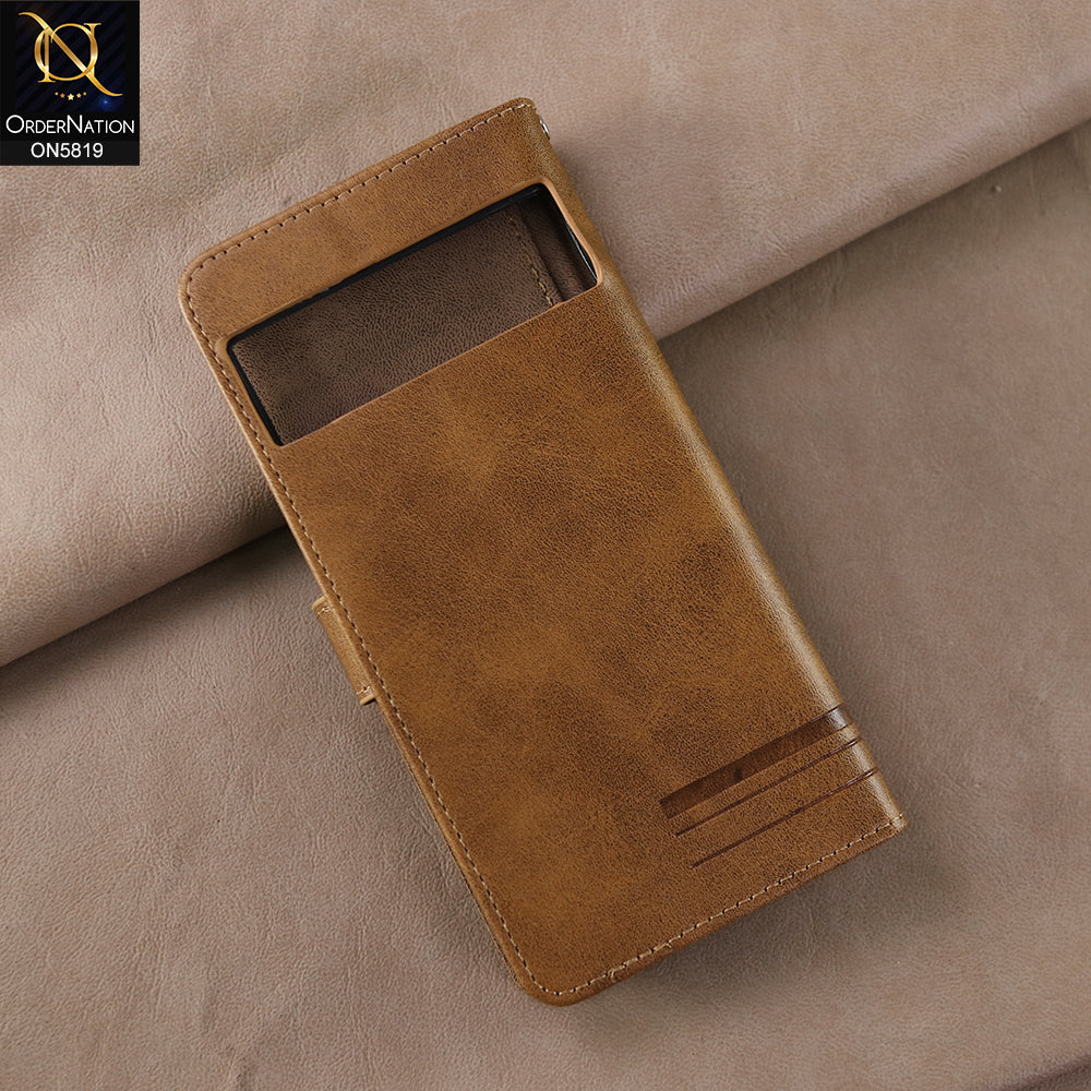 Google Pixel 6 Cover - Light Brown - Way Out Excellence Quality Soft Tpu Leather Flip Book With Card Holding Slots