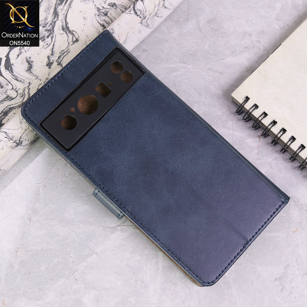 Google Pixel 8 Pro Cover - Blue - Premium Leather Megantic Flip Book Covers With Card Holding Option