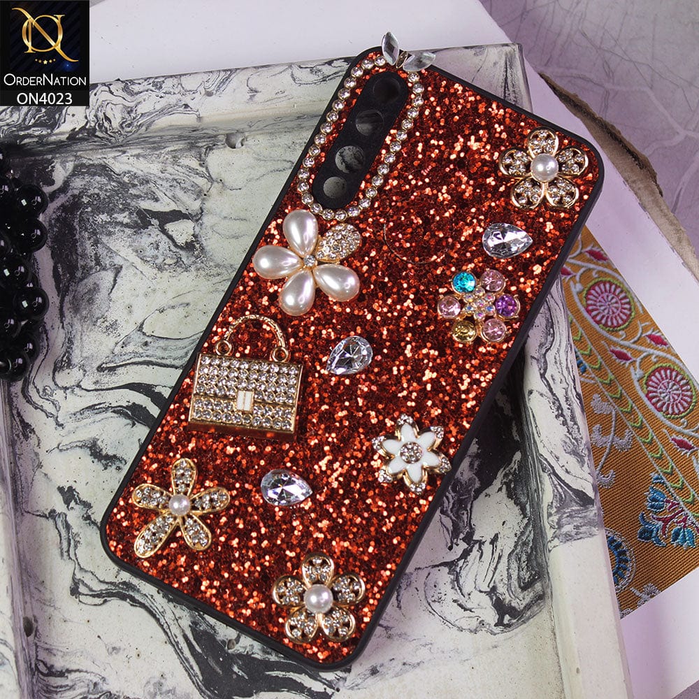 Honor 9X Cover - Red - New Bling Bling Sparkle 3D Flowers Shiny Glitter Texture Protective Case