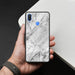 Huawei Honor 8C Cover - White Marble Series - HQ Ultra Shine Premium Infinity Glass Soft Silicon Borders Case