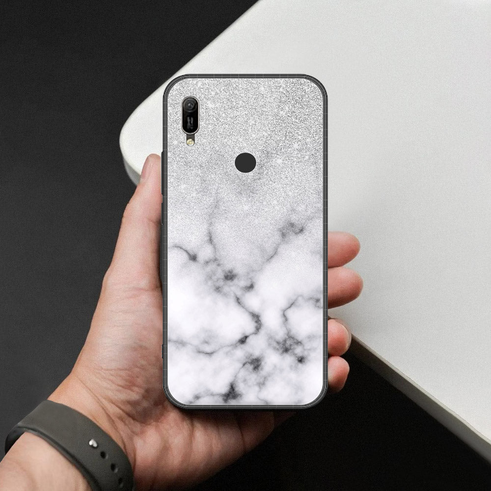 Huawei Y6 2019 / Y6 Prime 2019 Cover - White Marble Series - HQ Ultra Shine Premium Infinity Glass Soft Silicon Borders Case