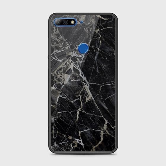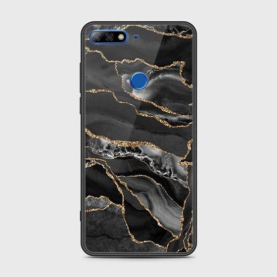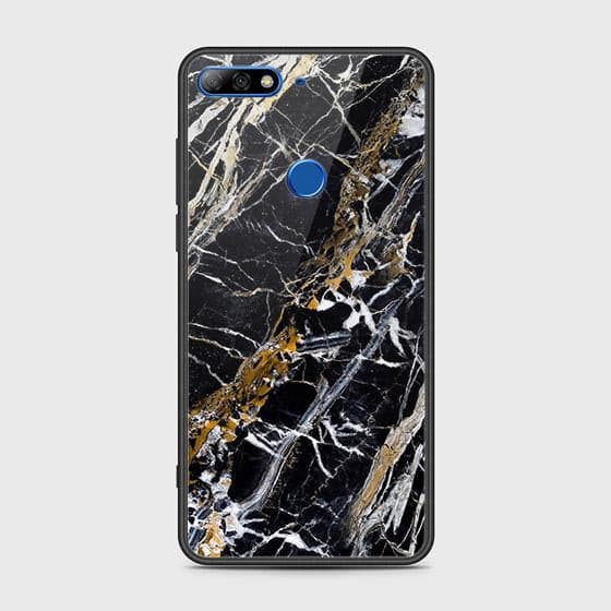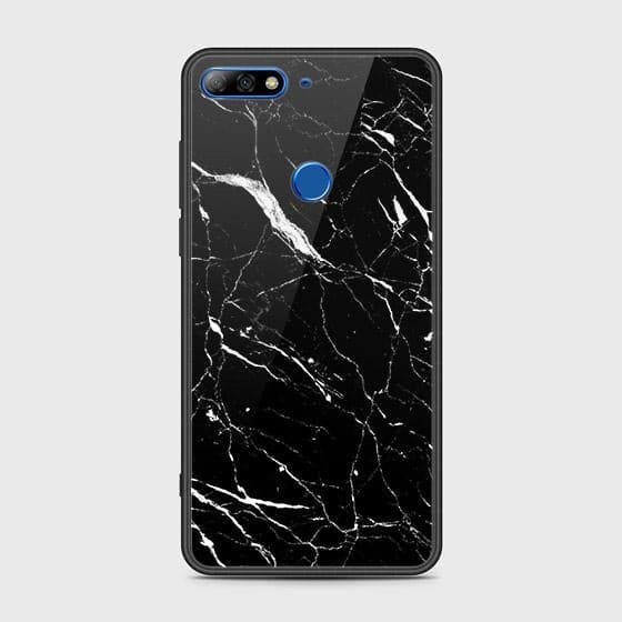 Huawei Y7 2018 Cover - Black Marble Series - HQ Ultra Shine Premium Infinity Glass Soft Silicon Borders Case