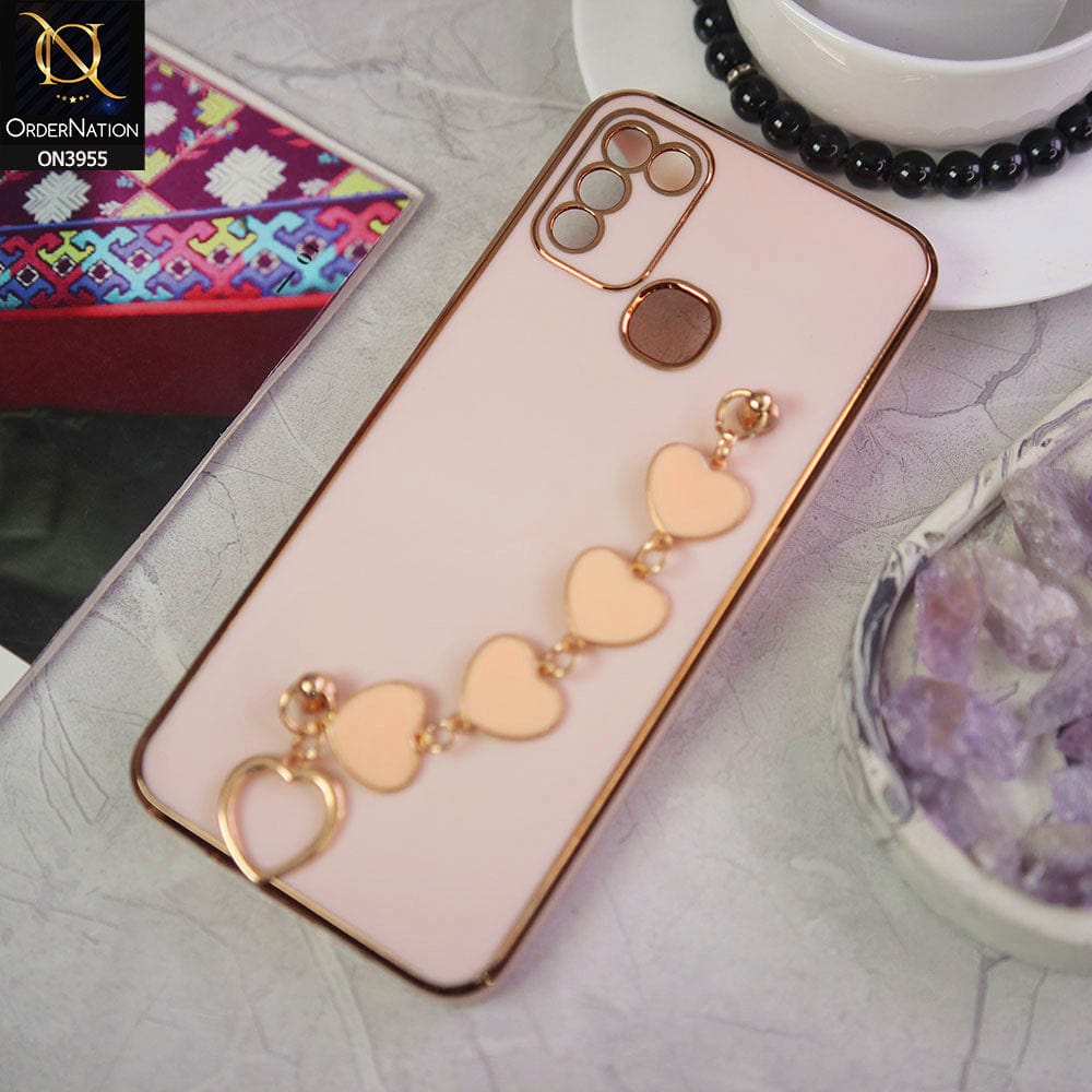 Infinix Hot 10 Play Cover - Pink - New Electroplated Soft Silicone Camera Protection Case With Heart Chain Holder