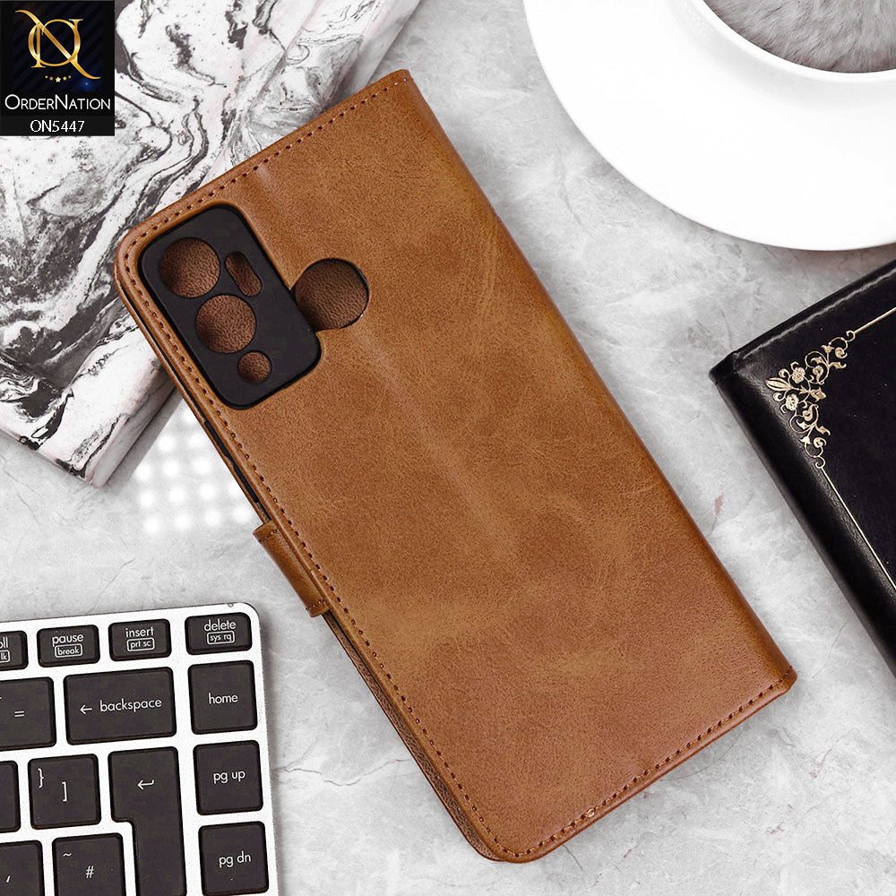 Infinix Hot 12 Play Cover - Light Brown - Premium Leather Megantic Flip Book Covers With Card Holding Option