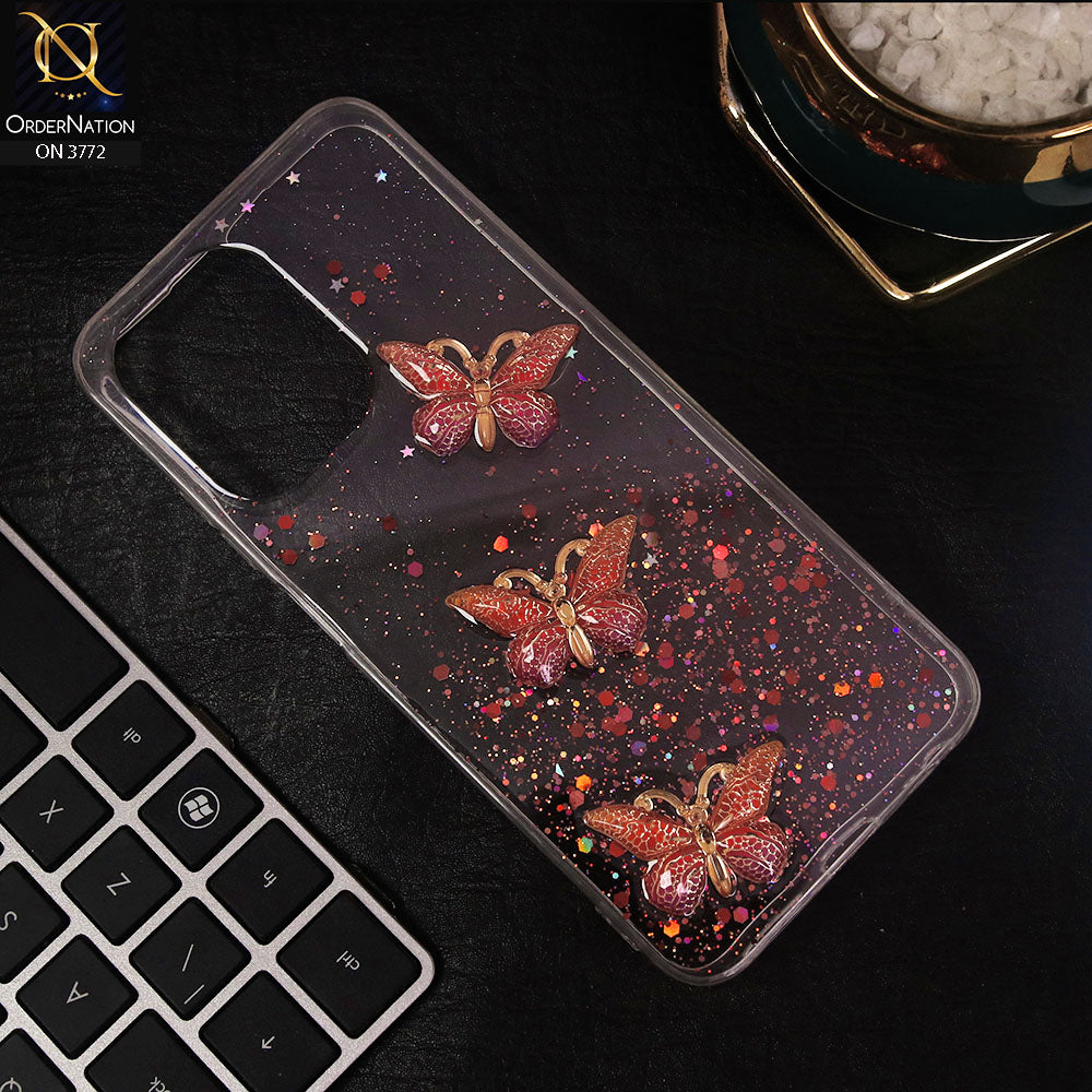 Infinix Hot 30i Cover - Red - Shiny Butterfly Glitter Bling Soft Case (Glitter does not move)
