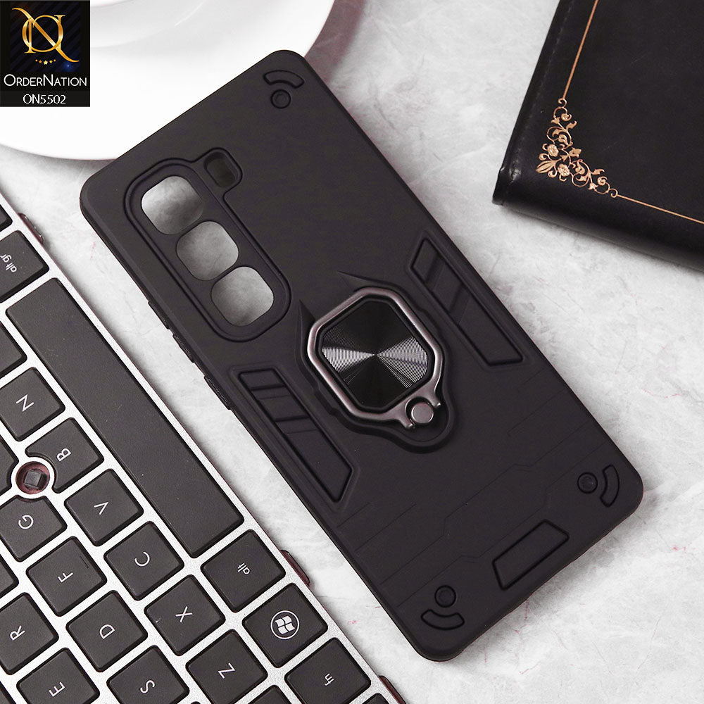 Infinix Hot 50 Pro Cover - Black - New Dual PC + TPU Hybrid Style Protective Soft Border Case With Kickstand Holder