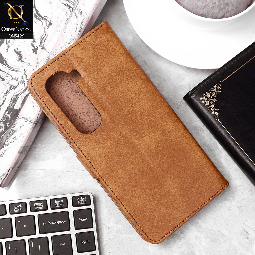 Infinix Hot 50 Pro Plus Cover - Light Brown - Premium PU Leather Magnetic Flip Book Card Slots Wallet Soft Case